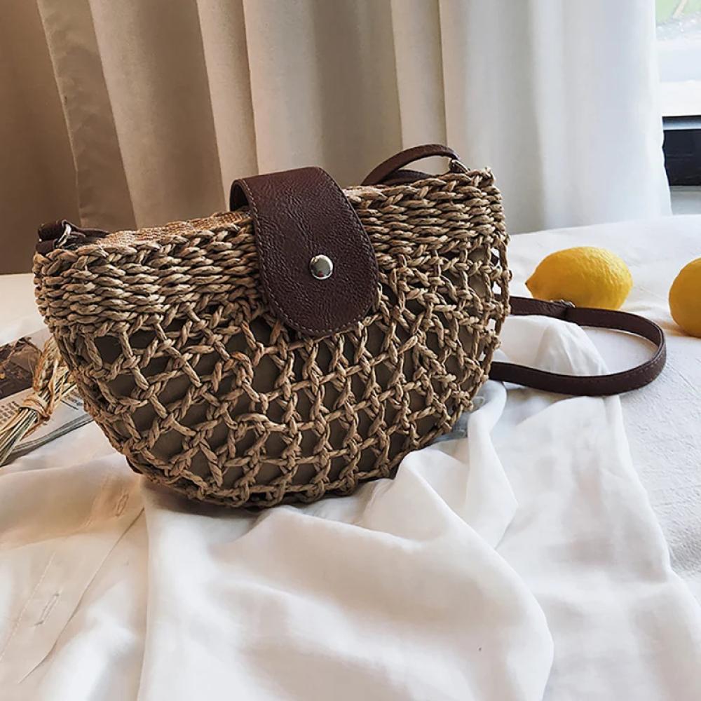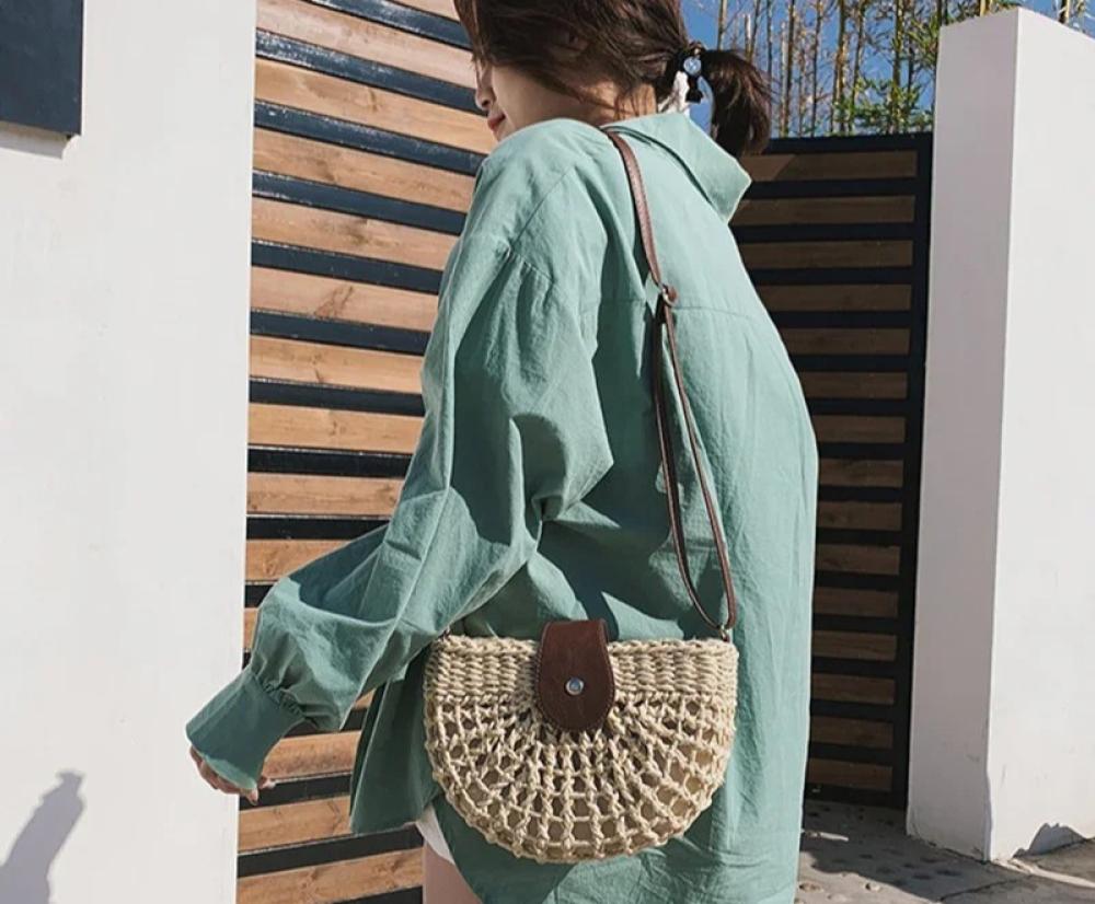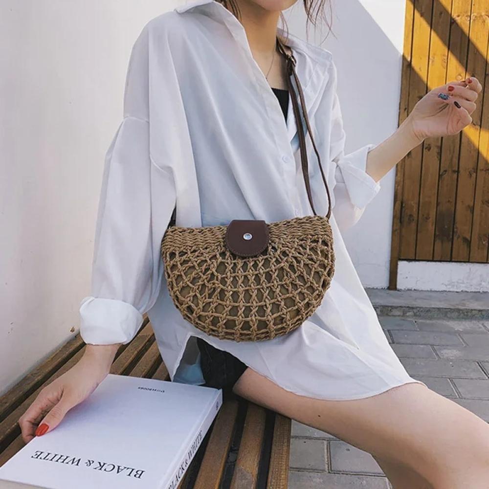 حقائب كتف مصنوعة يدويًا من القش للنساء