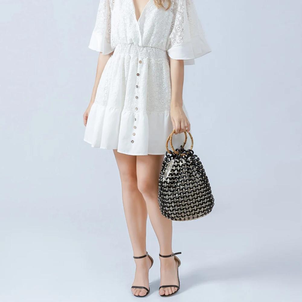 • اسم المنتج: حقيبة للنساء للشاطئ خرزة خشبية
