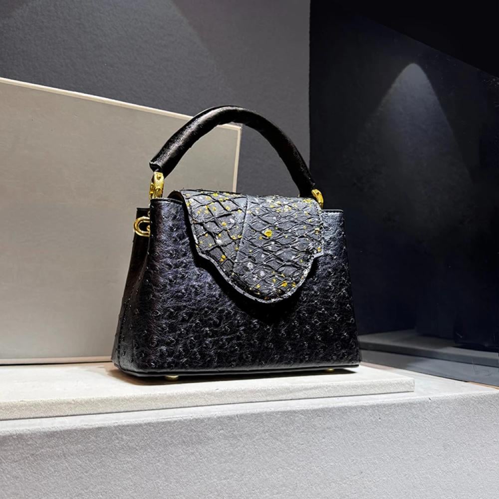 شنط مناسبات راقيه الجلدية بتصميم فاخر وطباعة نعام مع تصميمها العصري والجودة العالية، ستجعلكِ دائمًا في قمة الأناقة والجاذبية.